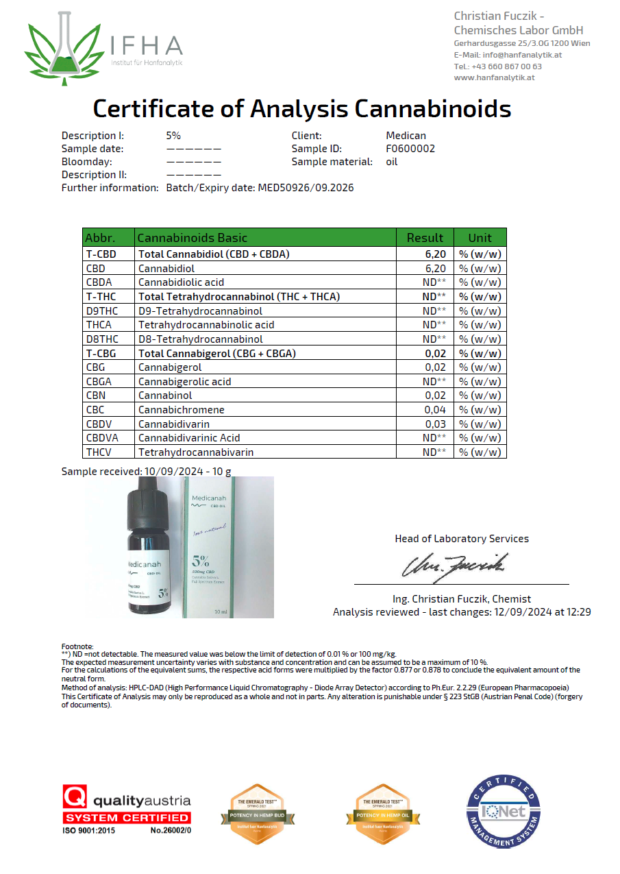 Uleiul Medicanah este produs in SUA din canepa certificata, cu teste independente pentru fiecare lot. Se controleaza totul de la semanare la extractie, pentru calitate sustenabila. La zonaverde.ro se aduc produse legale CBD in Romania.